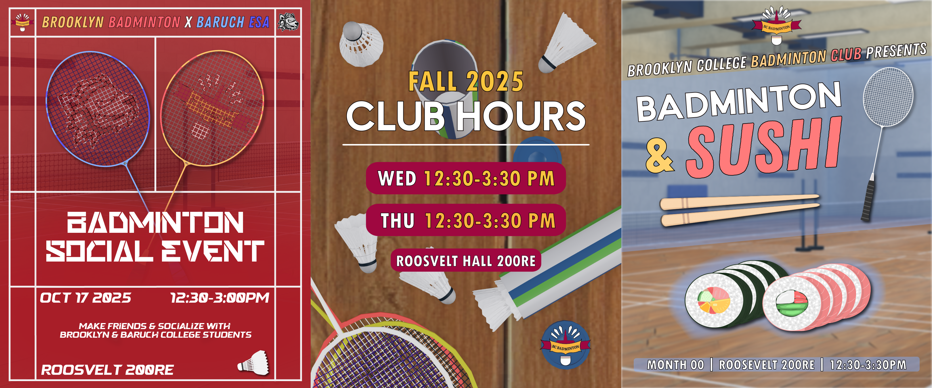 Posters that attracted new members to join Brooklyn College Badminton Club